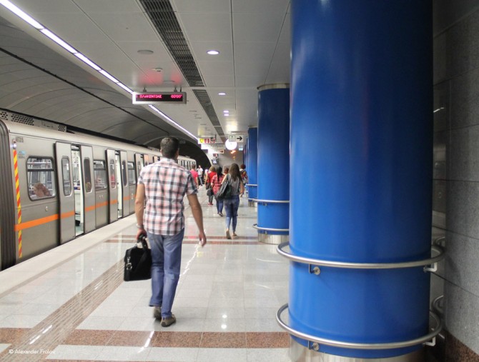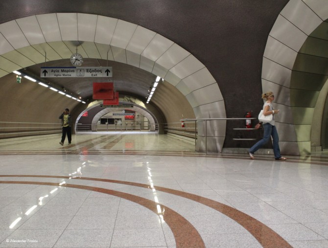Афинское метро невеликое - всего три линии, зато одна из них, зеленая, считается одной из старейших в мире - она была сдана в эксплуатацию в 1869 году. Собственно это железнодорожная линия, соединенная с линиями метрополитена, изначально соединявшая Тиссио и Пирей (по-гречески его называют Пиреос), и до сегодняшней длины в 24 станции была достроена в 1957 году. Ощущения от поездки на зеленой линии фантастические - участок между станциями Монастираки и Тисcио пролегает прямо по территории древней агоры. Другие две линии - красная и синия, были сданы в эксплуатацию в 2000 году (а новые станции строятся до сих пор) и благодаря прекрасному современному дизайну большинства станций считаются красивейшими в мире. Почти на каждой станции, в вестибюле представлены работы современных художников - как пример можно привести станции Синдагма и Эгалео, а также обустроены своего рода небольшие музеи, где представлены археологические находки, сделанные во время строительства метрополитена - тут как пример можно привести станции Монастираки и Акрополи. Ко всему прочему стоит упомянуть отличное кондиционирование воздуха - в жару метрополитен безо всяких натяжек можно считать оазисом. В общем, афинскому метро запросто можно посвятить целый день. И еще - тут звучит классическая музыка и ожидание поезда часов в 11 вечера, когда интервал примерно минут десять, станет не пыткой, а вполне приятным опытом.