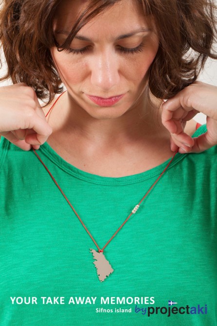 Греческий дизайнер Ирини Матинопулу, создатель компании Projectaki, что в переводе означает “проектик”, эту мечту осуществляет. Она проектирует и создает ювелирные украшения имеющие форму греческих островов, как, впрочем, и любых других мест в Греции. Это и кулоны и браслеты. Называются они “Воспоминания, взятые с собой”. Эти изделия ручной работы, придуманные и изготовленные в Греции, будут напоминать о приятных мгновениях вашего отпуска.